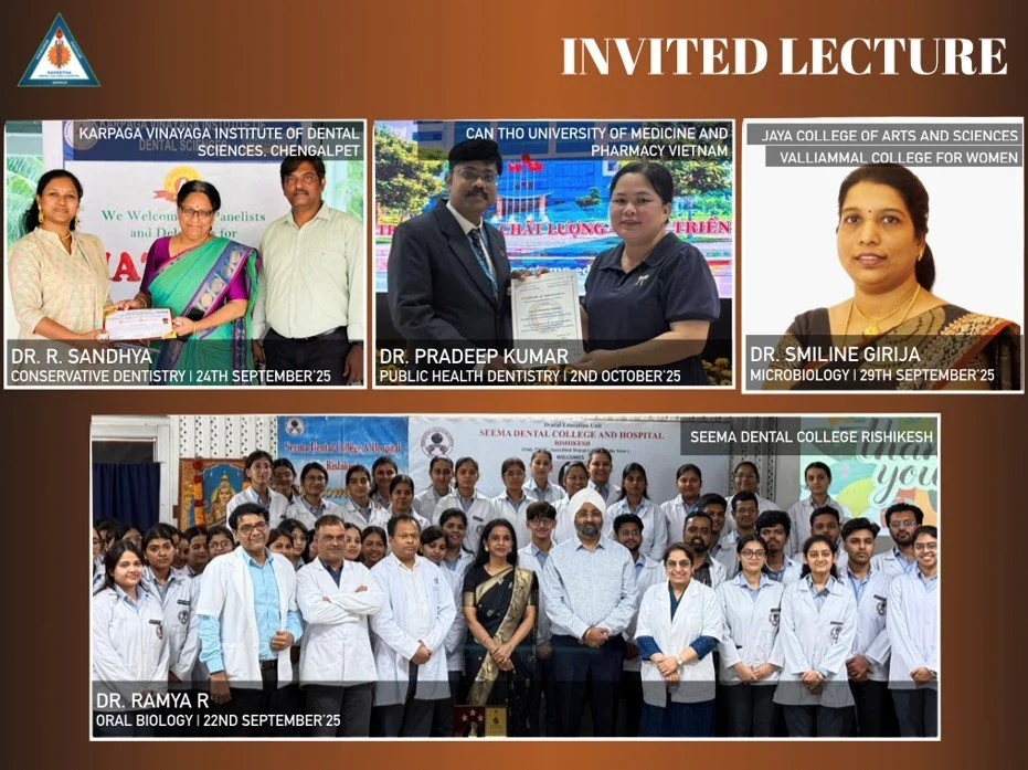 Invited Lecture Dr Ramya R delivered a lecture at Seema Dental College, Rishikesh Oral Pathology12 October 2025Saveetha Dental College, simats, vcsimats, oral pathology, oral Biology, oral pathology saveetha, DR R Ramya Facebook0 Twitter 0 Likes